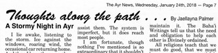 As of September 2017, Jaellayna Palmer has been writing a periodic column for the Ayr News. We are linking here the articles that have been published so far. (newest ones at the top)